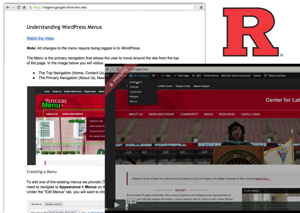 Having created plenty of free and premium WordPress tutorial videos in the past with their popular PressThis and SEO Lunch web series, Slocum Studio applied their knowledge and created a set of tutorial videos for Rutgers.